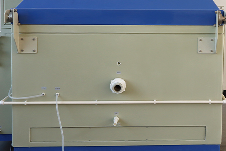 تنفيس توازن الضغط الدقيقيوجد جهاز توازن ضغط على جانب غرفة رش الملح للتآكل لمنع الضغط الإيجابي في غرفة العمل بسبب تراكم الرش ، مما سيؤثر على سرعة تسوية ضباب الملح. |