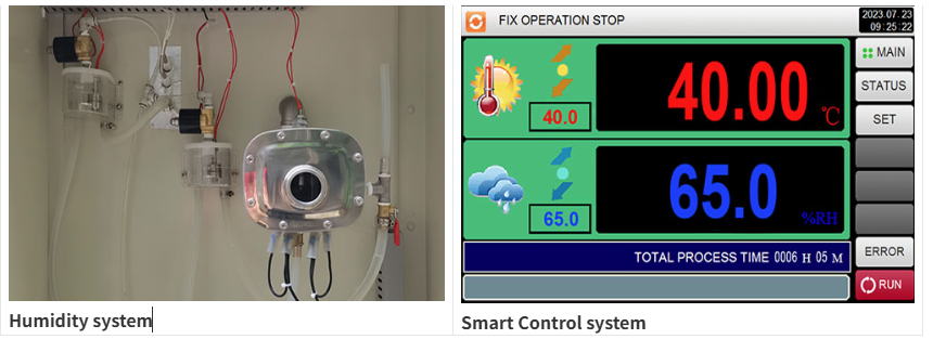 يتيح نظام التحكم البديهي إمكانية إعداد ملفات التعريف مسبقًا أو تخصيصها بالكامل ، بما في ذلك التدرج التدريجي أو دورات الخطوات أو محاكاة الظروف القصوى. يمكن إجراء دراسات الشيخوخة المتسارعة للتنبؤ بالاستقرار على المدى الطويل في جزء صغير من الوقت.